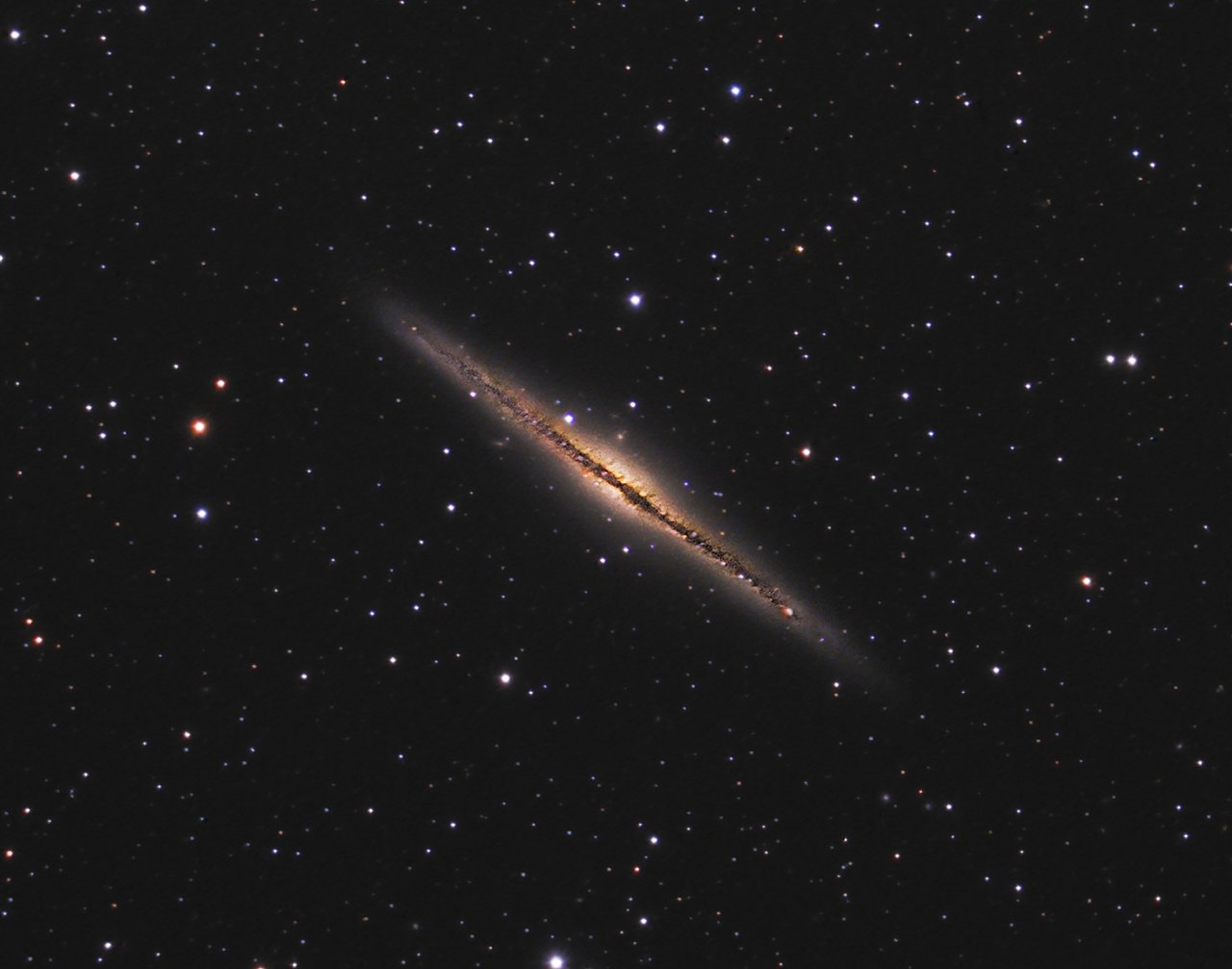 Finally, there’s NGC 891 (Caldwell 23) an edge-on spiral galaxy, this galaxy is very similar to the Milky Way with a prominent band of interstellar dust. It is 27 million light years away.