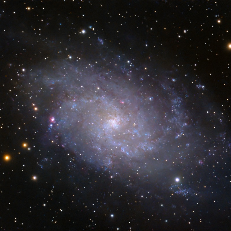 The Triangulum Galaxy (M33) is sometimes overlooked, or just an afterthought - partly because of being overshadowed by its neighbor Andromeda, but also because though itβs bright βoverallβ, itβs actually rather dim in surface brightness. But, itβs nearly overhead and well-suited for imaging, though even this image required a 60-minute exposure (with a Seestar S30).
