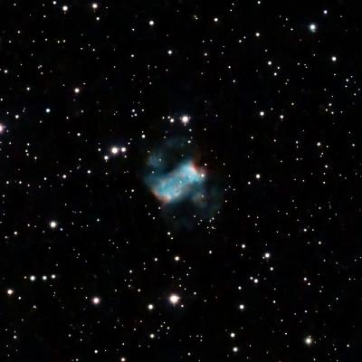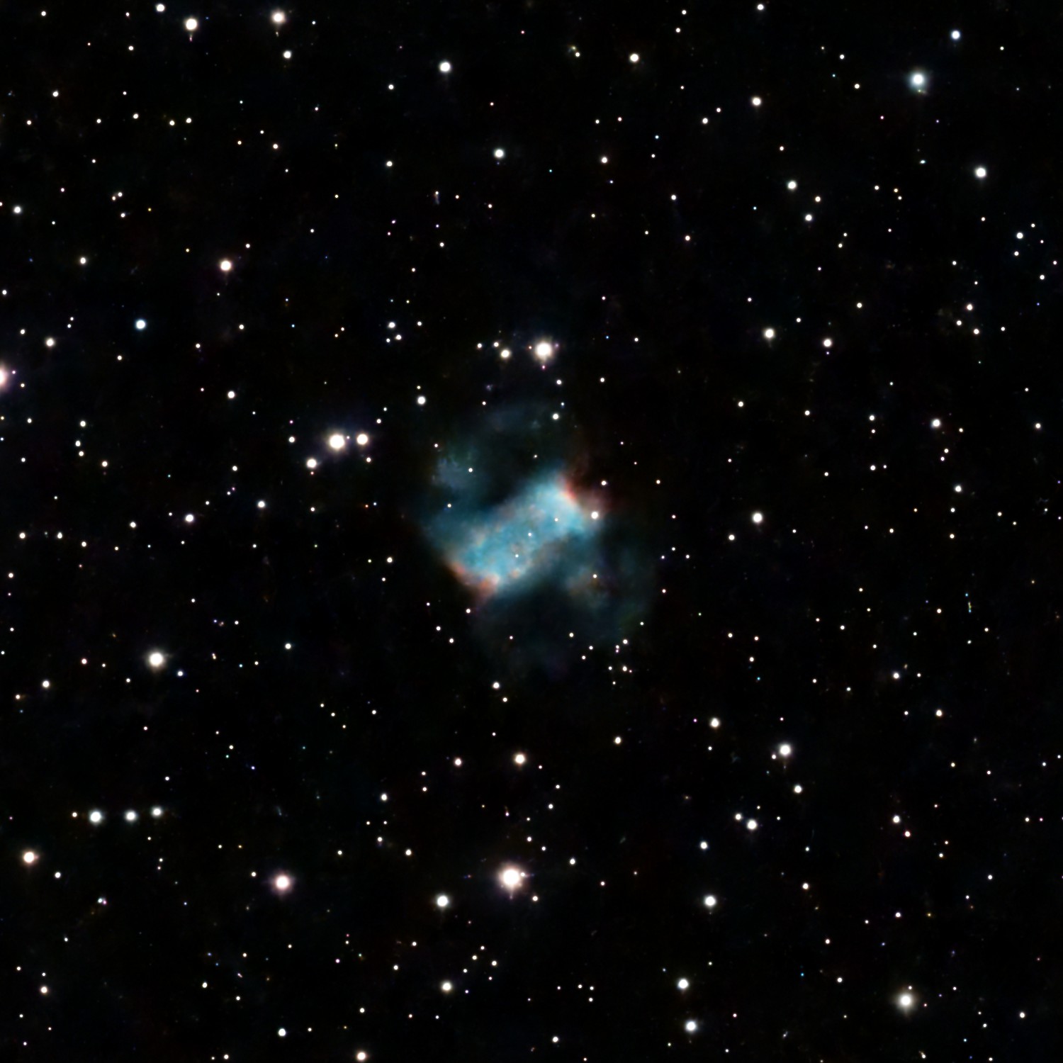 Discovered in 1780 by Méchain, and included by Messier in his catalog, this 10th magnitude object is 2500 light years away, and about 1.2 light years across. It’s overall faintness makes it one of the more challenging Messier objects. The bipolar nature of this planetary (as compared to the Ring Nebula) which could be due to the central star being part of a binary system.
