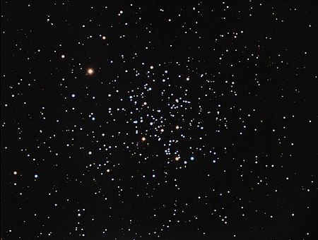 Dimmer than the Beehive, this cluster is very important because of it’s age: between 3 and 5 Gyr. Clusters this old are rare (most dissipate after 1 Gyr or so), so having several dozen stars all known to be about the age of the Sun provides a laboratory to investigate stellar properties and evolution. Astrophysics aside, it is an easy object for binoculars and small telescopes.