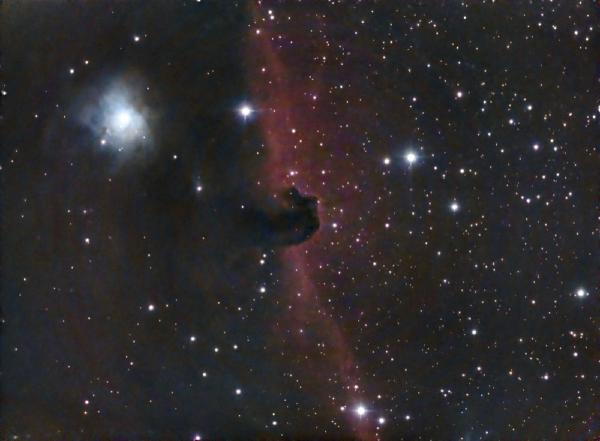 Here, the dust cloud of the dark nebula (3 1/2 light years across) is situated in front of an illuminated emission nebula (IC 434). Itβs 1,753 light years away.