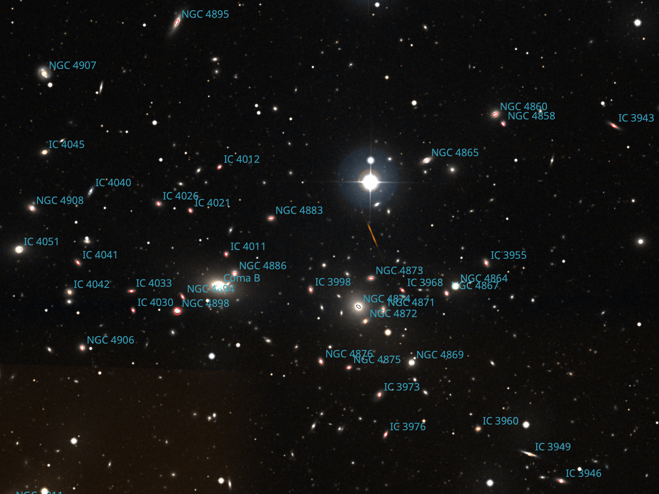 | Coma B (NGC 4889) | Cluster of Galaxies | Binoculars/Small Telescope |