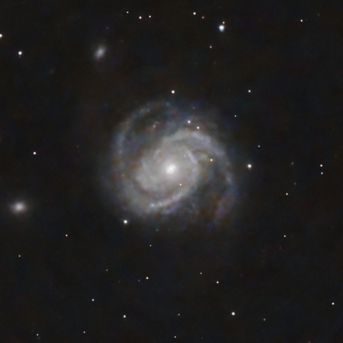 M 100 is a face-on spiral with very extended arms, one of the brightest galaxies in the Virgo Cluster, 55 Mly away. It’s only 60% the size of the Milky Way.