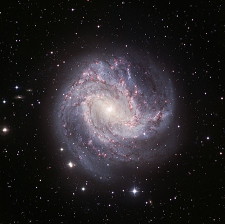 Very low in the sky, is the beautiful Southern Pinwheel galaxy, Messier 83, sitting on the Hydra/Centaurus border.