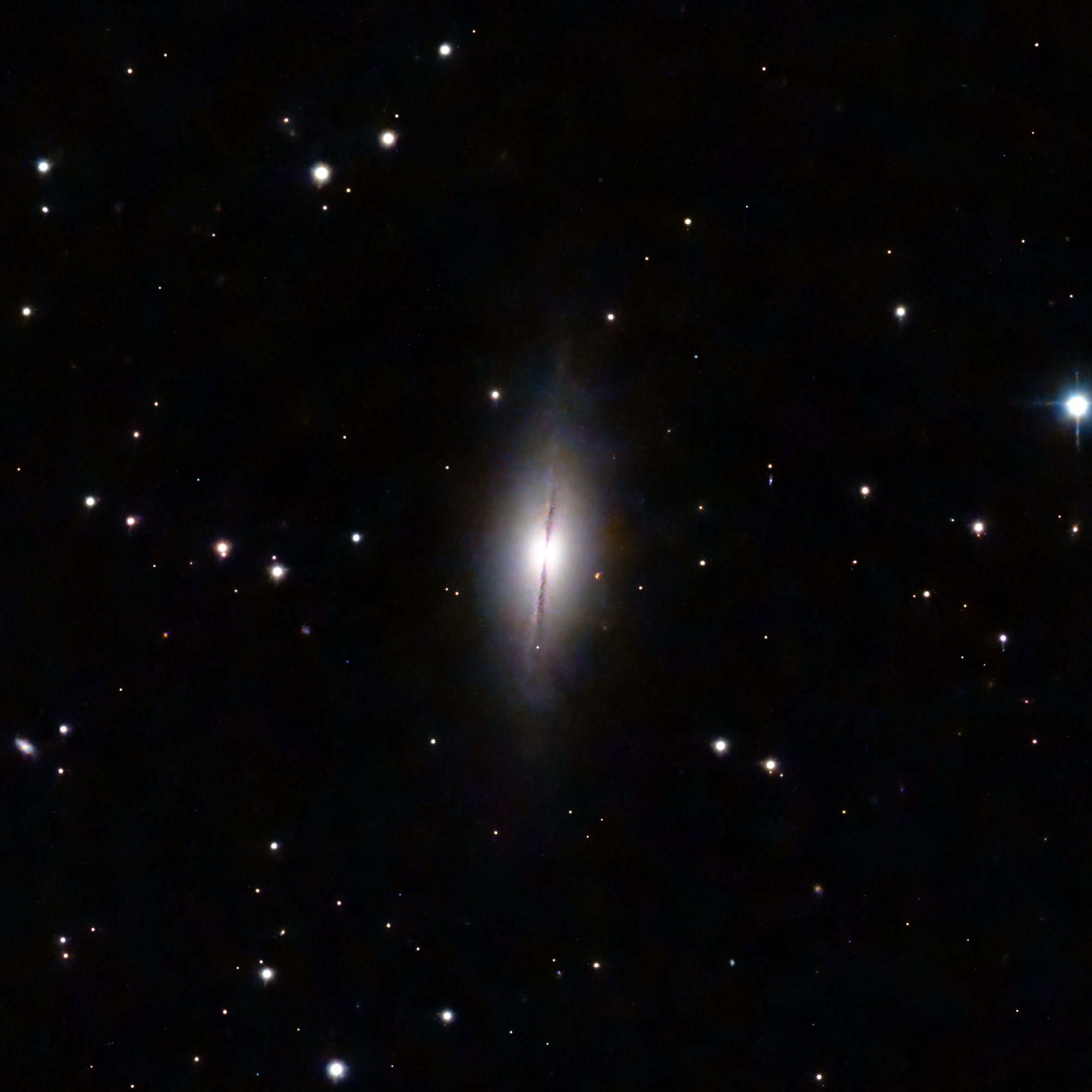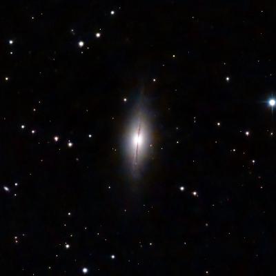 In the SE corner of the Great Square is another bright edge-on galaxy, NGC 7814. It has a prominent thin dust lane - very similar to the “Sombrero” Galaxy, M 104, in Virgo. It is 40 Mly distant. The disk is slightly warped. In the nearly background sky are a great number of very faint more-distant galaxies.