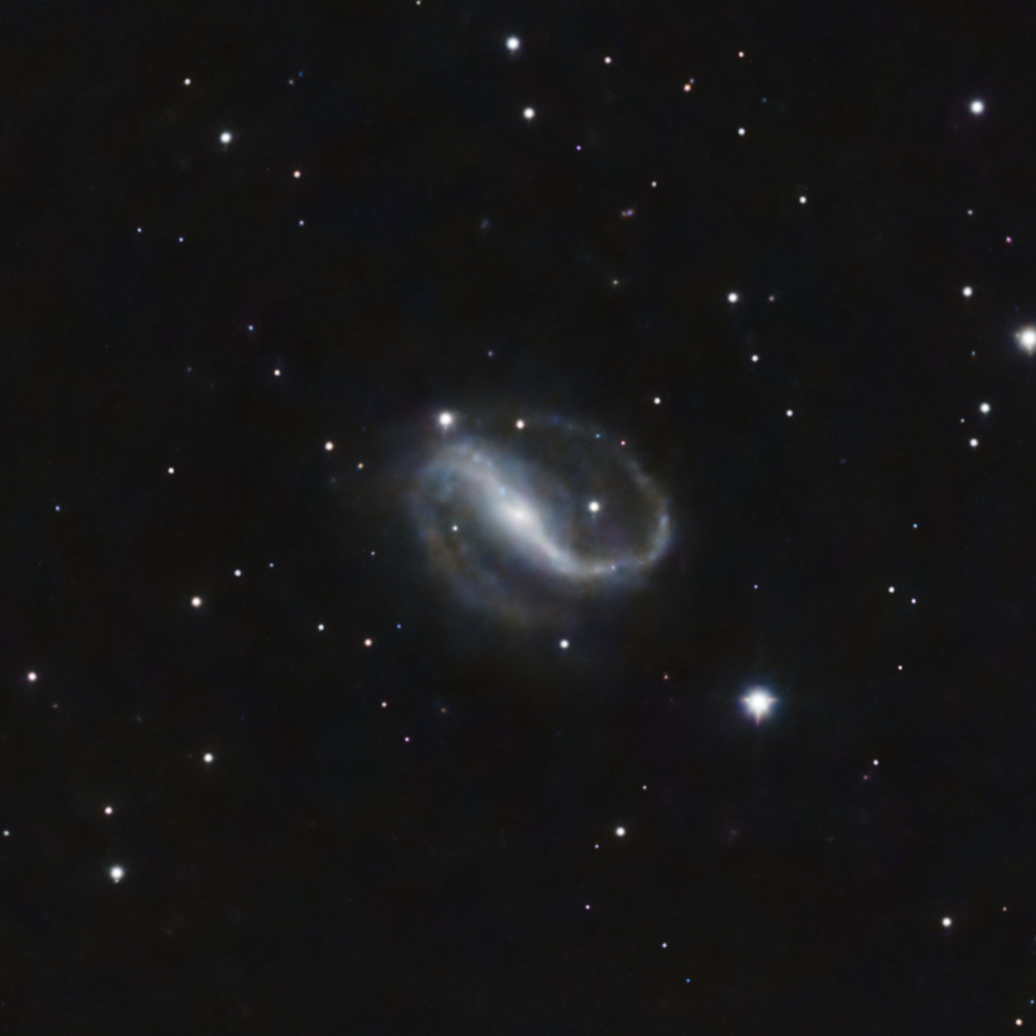 NGC 7479 is about 3° S of the bright star α Pegasi (Markab). Its two open sweeping spiral arms give it the name “the Superman Galaxy” (even though it’s a mirror image of a big galactic “S”. It is experiencing significant starburst activity.