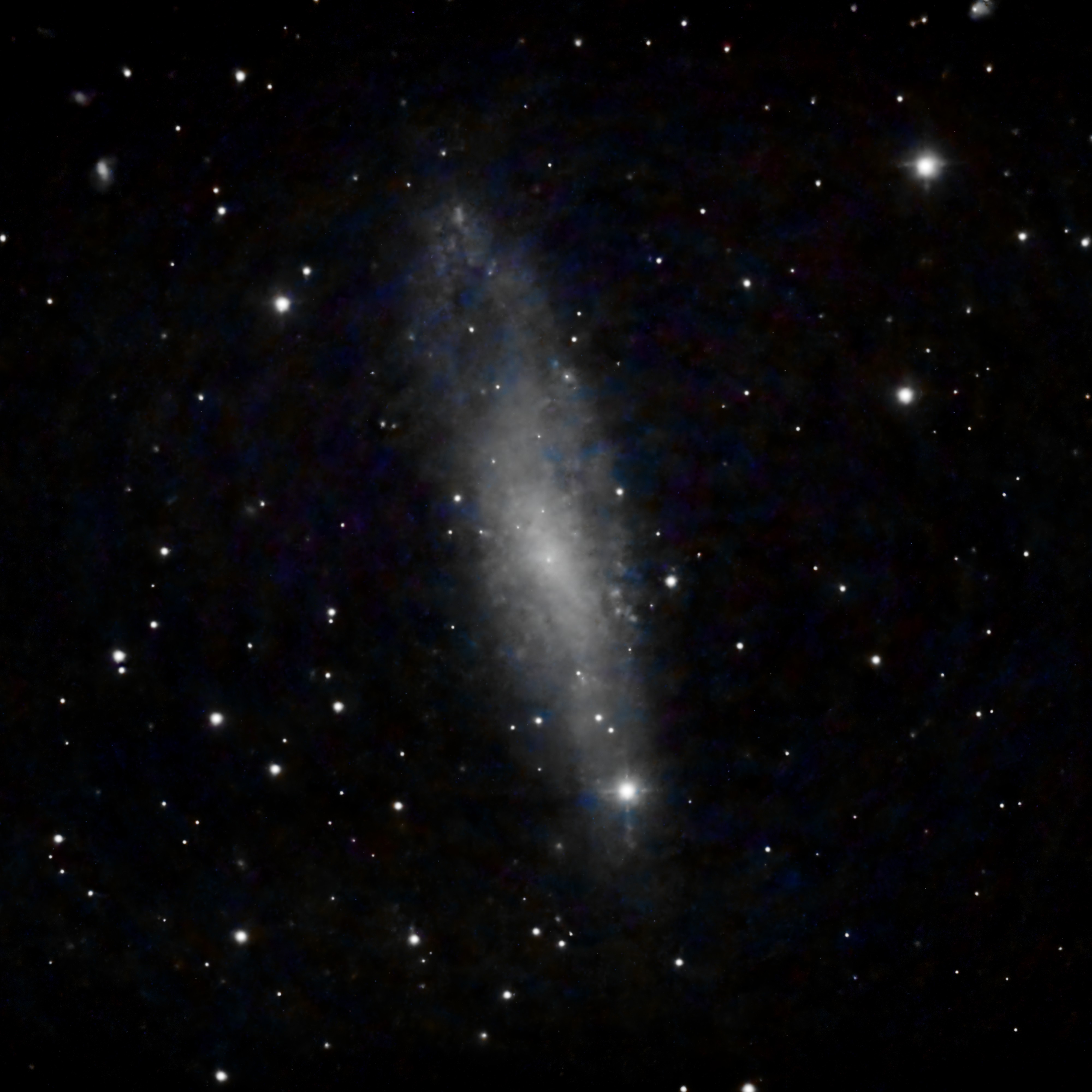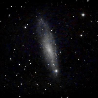 Closer to the Sun (only 11 Mly) is NGC 247 - the “Claw Galaxy”. It is mostly edge-on and very asymmetric with a “void” on one end containing no younger blue stars. 15-20’ to the N is Burbidge’s Chain: a line of five fainter and smaller background galaxies (mag 14-15, ~290 Mly distant).