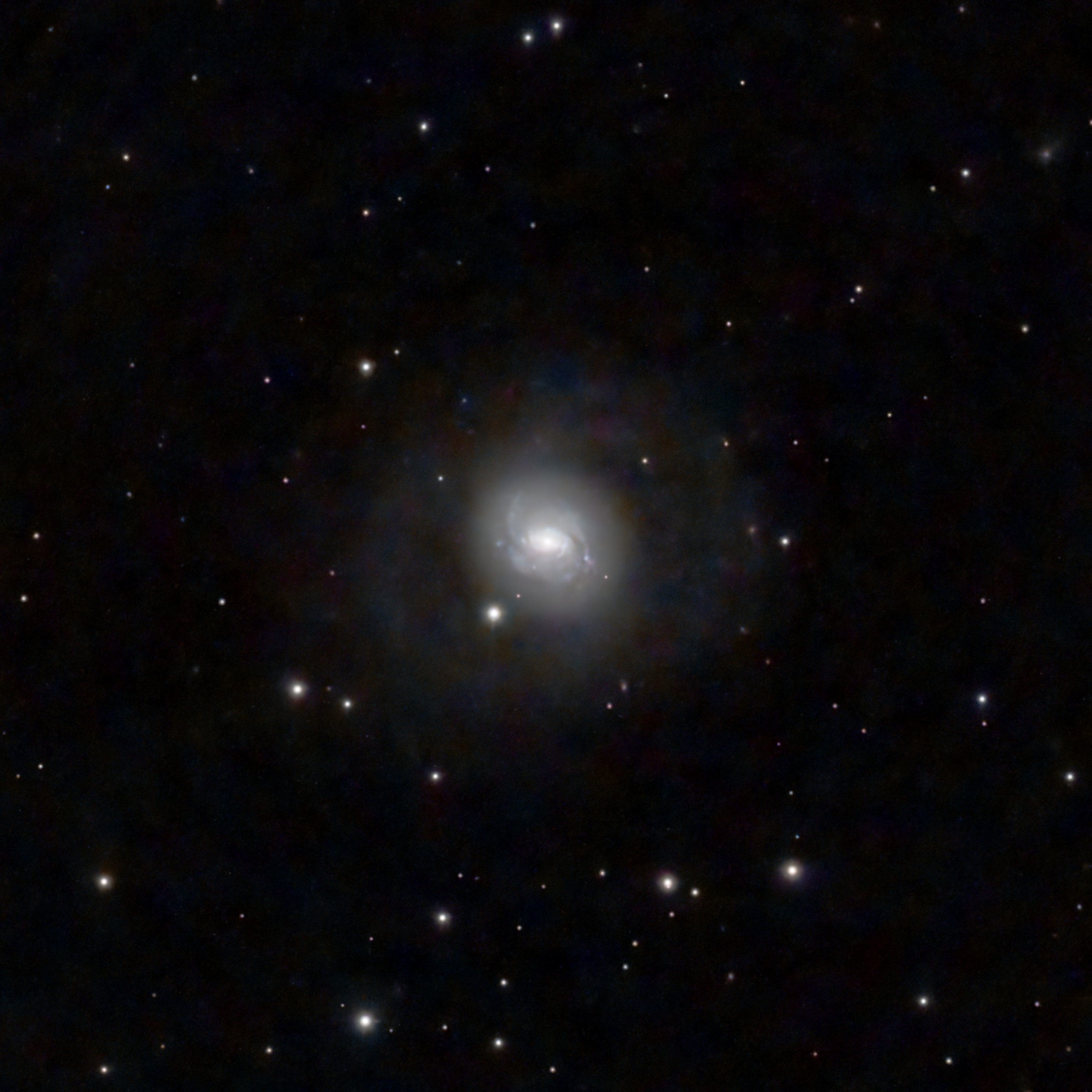 Messier 77 is 47 Mly from the Sun, about 170 kly across. It has an active center (making it a Seyfert galaxy) and is the brightest (and nearest) galaxy of this type in the sky. The arms are tightly-wound, giving it a fuzzy appearance in small scopes; larger (and imaging) telescopes begin to reveal the oval halo and finer details of the structure.