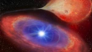 One of the first variable stars recognized, Mira is a binary star with a red giant and white dwarf pair. As Mira loses mass, some of that is accretes onto the companion. As a system they’re about 70 AU apart - the rest forming a tail 13 ly long formed over millennia.