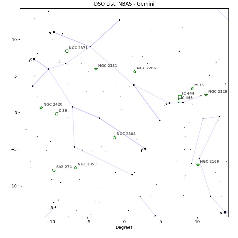 Aside from Mars dominating the region, there are plenty of DSOs to find in Gemini and a few real challenges!