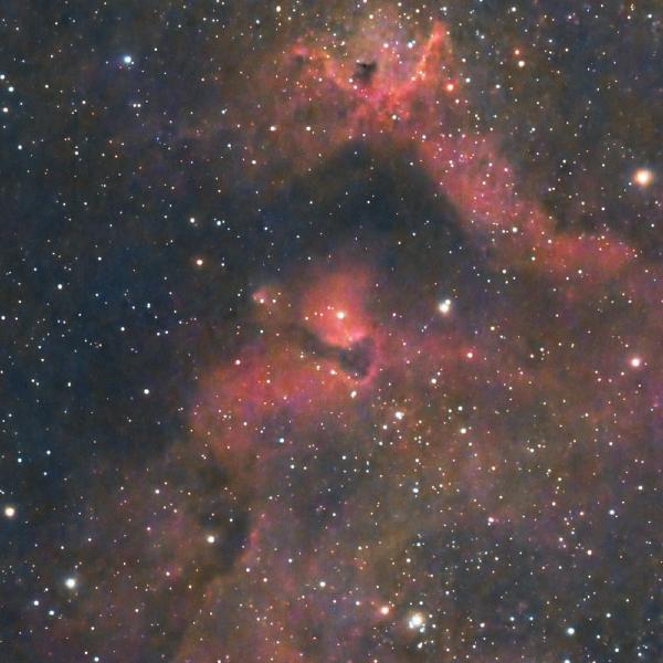This is just a part of the Soul Nebula (IC 1871) in Cassiopeia (the Heart Nebula is nearby). Itβs about 6500 ly away. These large nebulae have structure carved out from radiation and winds from the most massive stars, causing shocks that ignite and further additional star formation.