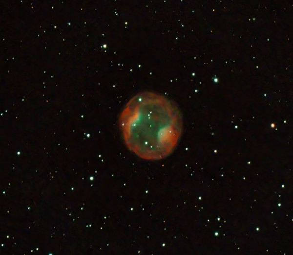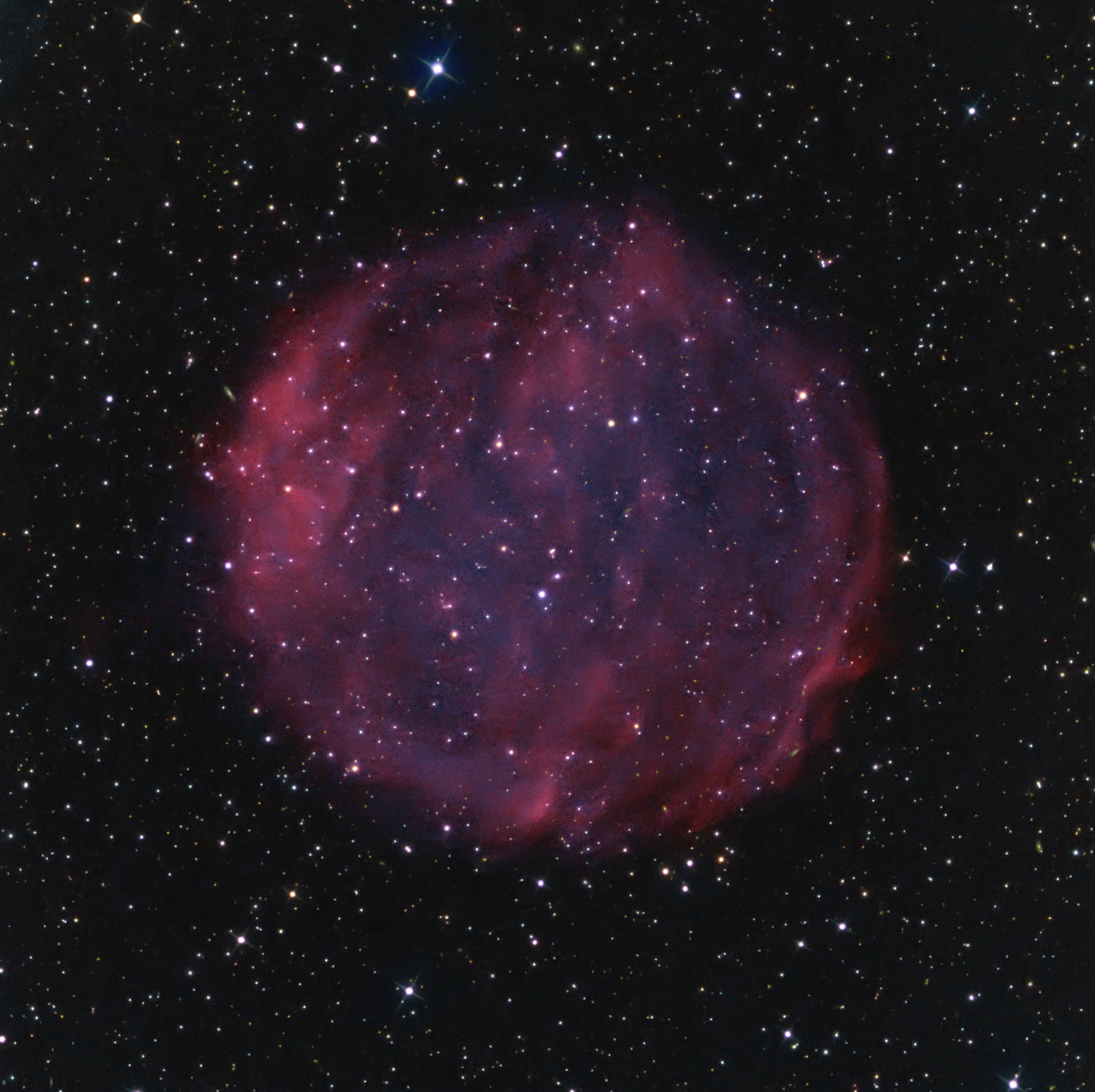 This is one of the faintest PNs known to exist. And compared to most PNs it’s very large (20’ - about 1/2 the size of the Moon) and so its surface brightness is very low. It wasn’t discovered until 1980 from the Palomar Sky plates. It’s about 4 ly across - so extended far beyond the size of our Solar System. Detecting this typically takes a few hours of narrow- band (Ha+O III) imaging.