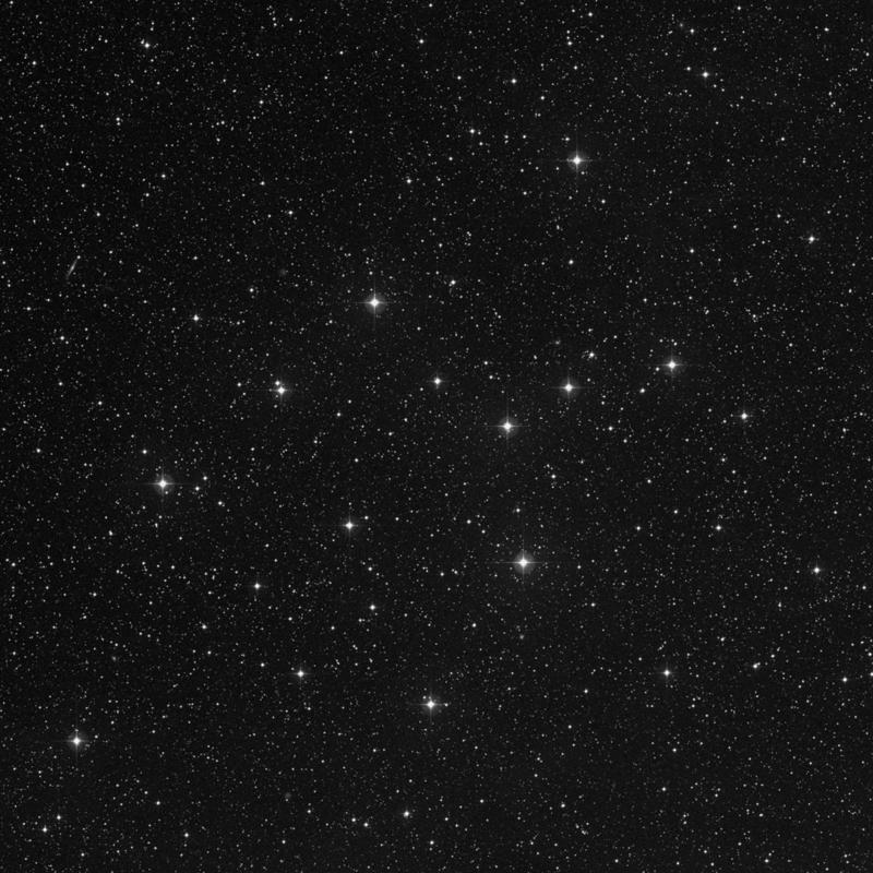 This somewhat sparse open Cluster is just 1° NE of β (beta) Ophiuchi. It’s best observed with binoculars or lower-power telescope eyepieces. Like many open clusters, it’s young (about 40 Myr old), but while it has few hot (bright) bluish stars, there are many faint lower-mass stars. About 1° to the SE is another sparse cluster: Collinder 350 also at the same distance from the Sun: in fact these two clusters are only 118 ly apart, having moved closer together since their individual formation - so there’s a (very slow) collision going happening!