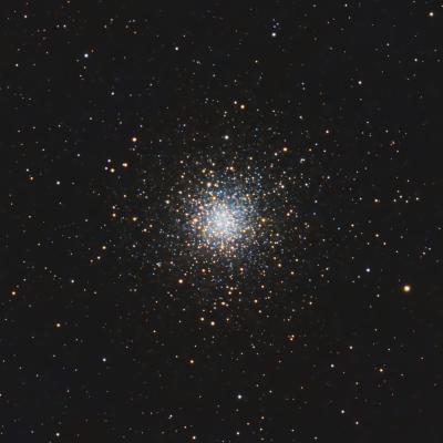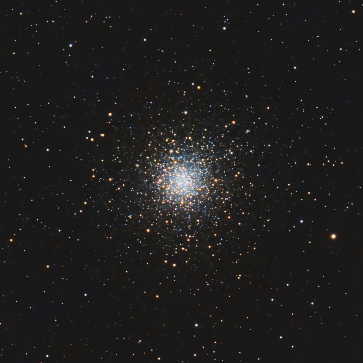 While there are many globular clusters to see, M 10 has the largest angular diameter (20’) and is almost naked-eye brightness (mag 6.6). Like many similar clusters, it orbits the Milky Way in the halo — it’s 13,000 ly from us. Although a few globular clusters are now known to have been “born” in other galaxies that collided with the Milky Way billions of years ago, all the bright Ophiuchan globulars appear to have been formed along with the Milky Way galaxy.