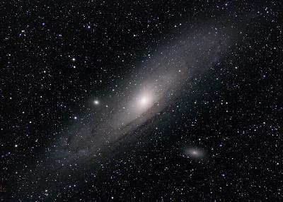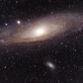 Probably the most famous galaxy, M 31 is the closest major galaxy to the Milky Way, about 2.5 million light years from Earth. Like the Milky Way Galaxy, Andromeda has several satellite galaxies: Messier 32 and 110 are the largest, to the left and below right of M 31, respectively.
