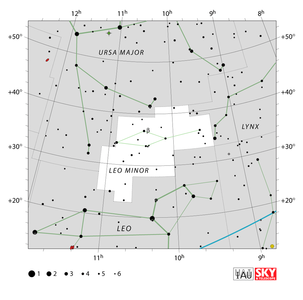 Leo Minor is one of these early “new” constellations, introduced by Hevelius in 1687, along with nearby Canes Venatici (the Hunting Dogs), Lynx (the Lynx), and Sextans (the Sextant), and by the time the International Astronomical Union set down the “official list” of the 88 constellations we now know, Leo Minor had been recognized for over two centuries, and therefore “made the cut”.
