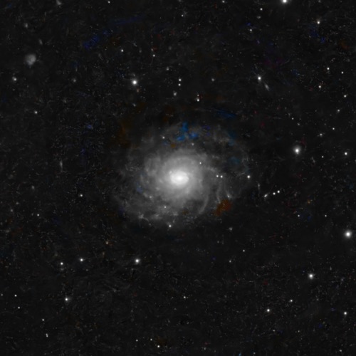 This double-ringed galaxy has a high star-formation rate in clusters all along the spiral arms. The very faint outer ring is asymmetric and not centered on the nucleus, which is odd because it doesn’t appear to have interacted with any other galaxy: in fact, its isolated with its closest neighbor NGC 3274 (almost 23 Myr away or roughly 10x the distance between our Galaxy and Andromeda). How the outer ring was formed (and how long it will last) is a mystery.