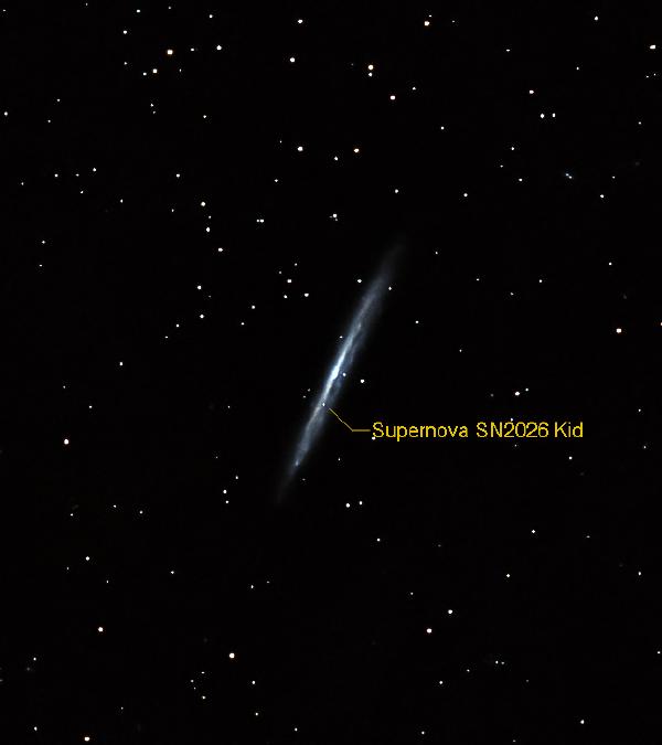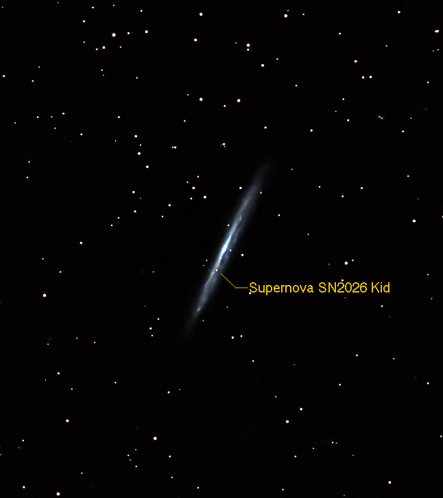 But the image below, taken in the last day by Sándor Szabó with his Seestar S50, shows the new supernova close to the nucleus, but clearly standing out: