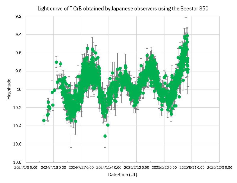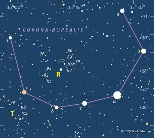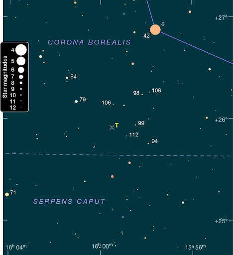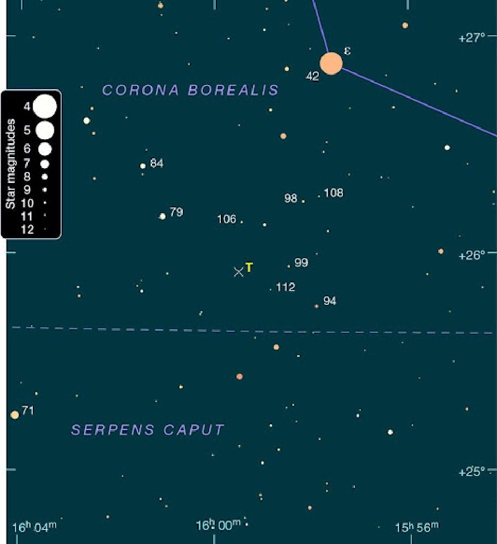 So, Corona Borealis being a late-Spring constellations just East of Boötes rises just after sunset, making continued monitoring of the star convenient. Keep you eyes peeled! The “fuzzy” window of opportunity is probably anywhere from mid-May to mid-July (after which we’ll have to wait until 9 Feb 2027). Maybe you’ll get lucky!